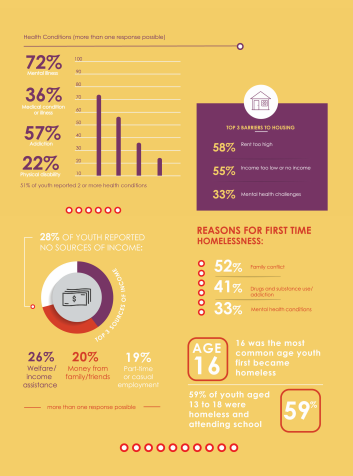 The report paints a stark landscape about the outcomes faced by youth who are susceptible to marginalization and stigma. The first of its kind, the count was conducted in April 2018 and found at least 681 people aged 13 to 24 homeless in the region.